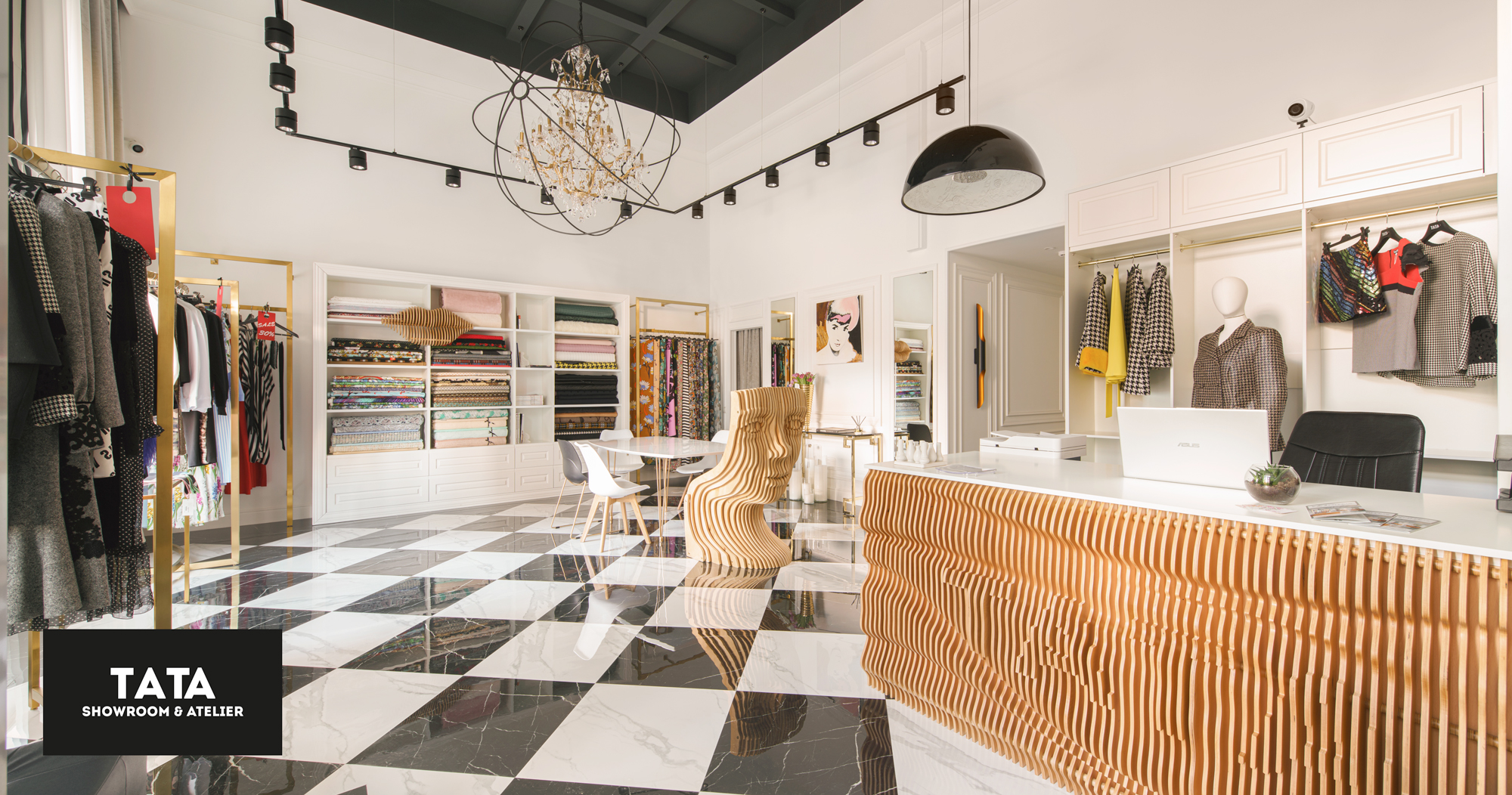 Сегодня TATA ATELIER — это просторное креативное пространство, которое объединяет ателье и шоу-рум. Здесь также предусмотрены зоны для мастер-классов, фотосессий, лекций, встреч со стилистами, локальных выставок.